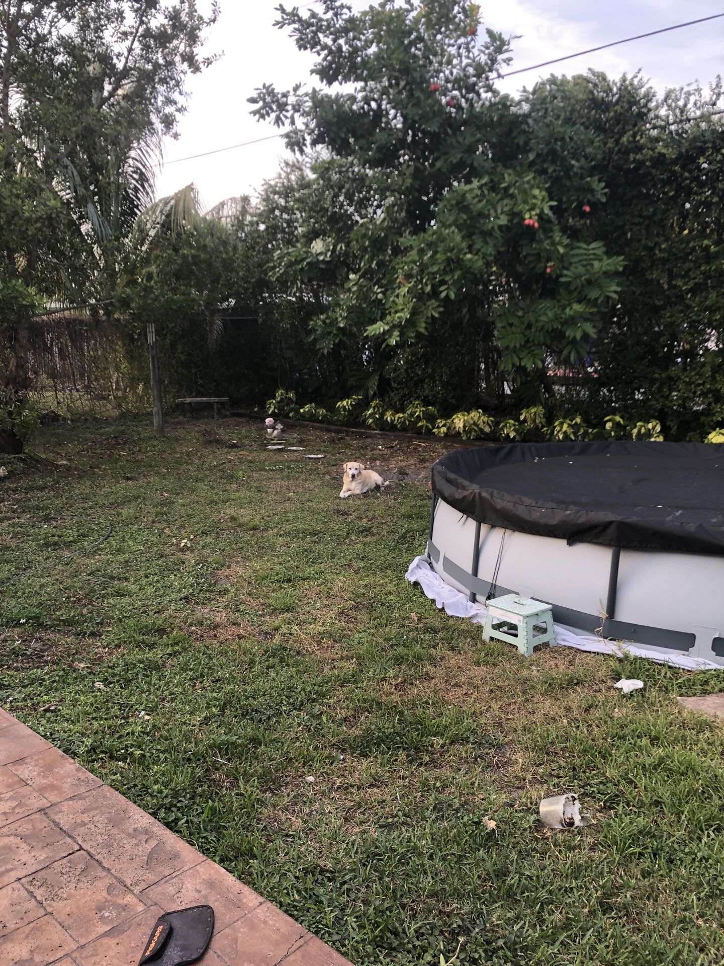 Level ground beneath pool